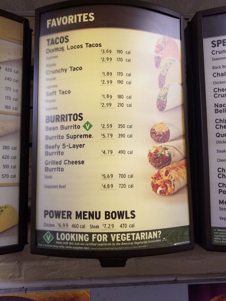 A warm-and-flaky flatbread shell filled with slow-simmered black beans, lettuce, diced tomatoes, a blend of mozzarella, pepperjack, and cheddar cheeses, and reduced-fat sour cream. Item is lacto-ovo, allowing for dairy & egg consumption. Preparation methods may lead to cross contact with meat. See ta.co for full details.